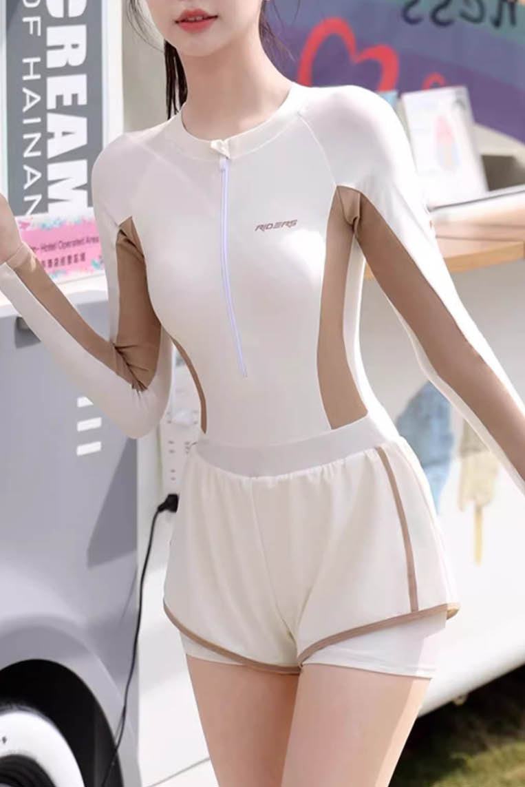 活力拉链式裤装长袖泳衣