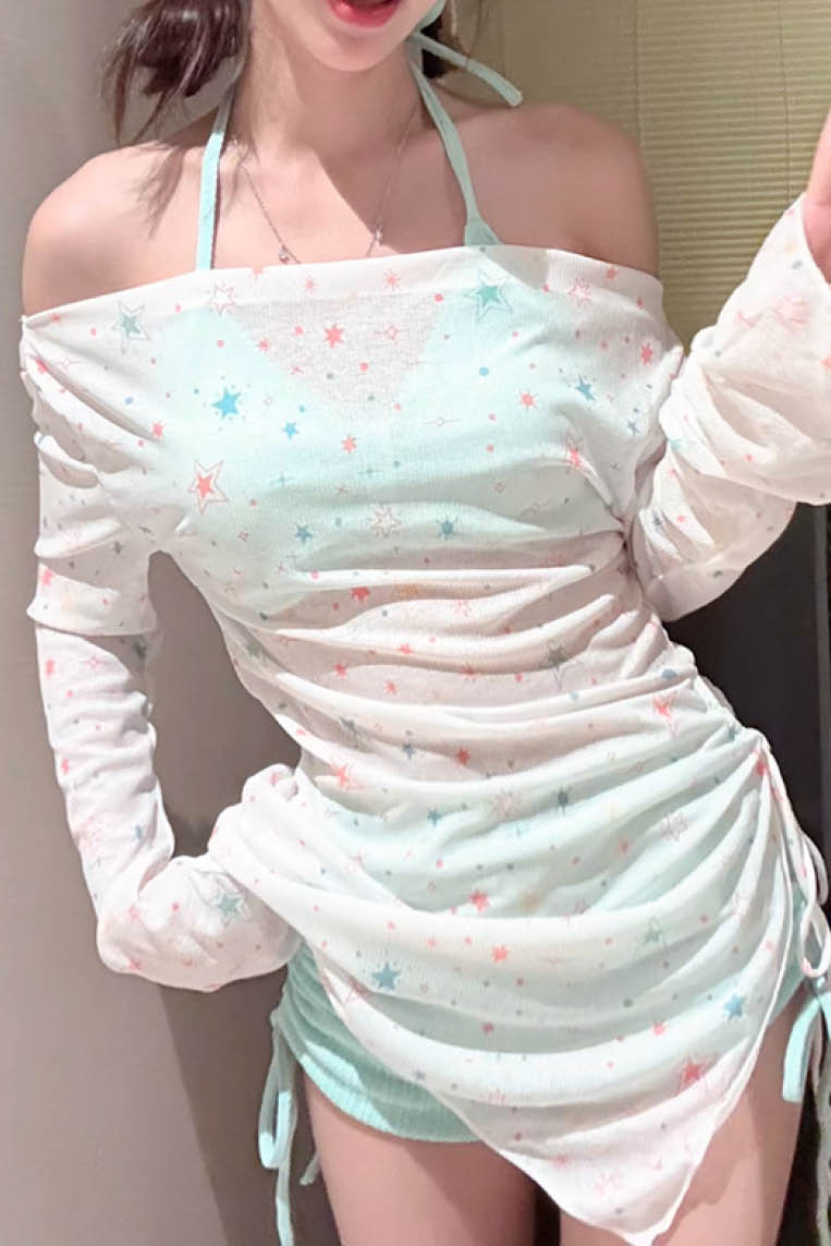 轻薄罩衫平角裤泳装三件套(only available online)