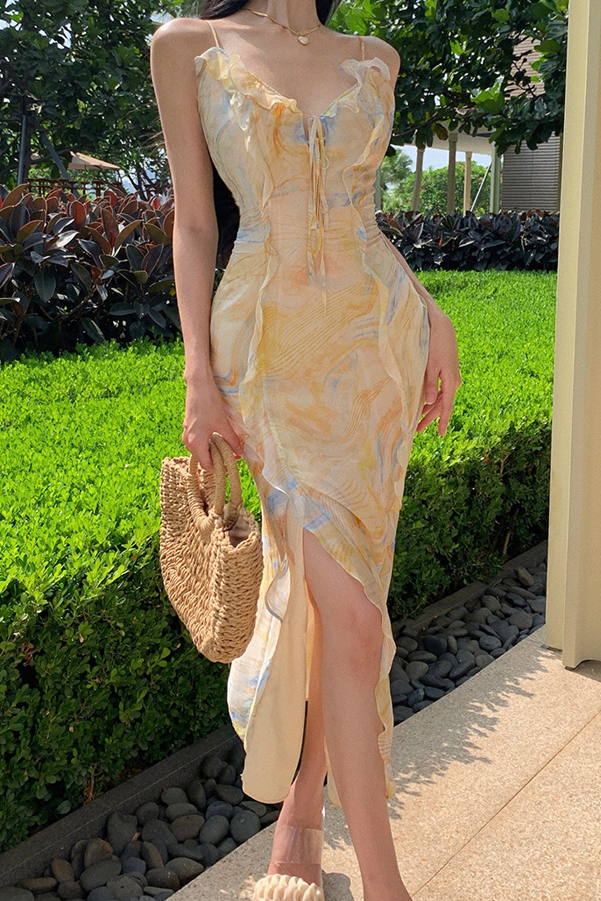 混纺碎花连衣裙