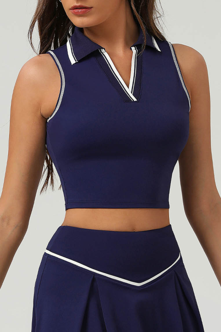 无袖拼色V领运动背心